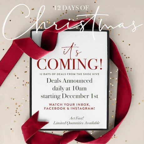 I know I keep going on and on about all the shopping events we have on the calendar, but I just want to make sure we don’t miss anything. So today (okay to be technically accurate, it all started yesterday but it was Sunday of Thanksgiving weekend, so let’s do a reset) I thought I should give everyone a little reminder. https://youtu.be/4NdAt8-aZnI Last year we had our Inaugural 12 Days of Christmas promotion. It was so popular, we decided we had to bring it back, and make it bigger of course. It launched yesterday with Day 1, and Stylebook readers are getting an early look at the second deal since we send out our email at 8:00 am.Here is how it will work: every day at 10am we will email our Shoe Hive email list and post on Instagram and Facebook the “deal of the day.” We have limited quantities of each promotion so the sooner you get in the store, the better. We will try and keep up with shopping via Instagram but if you don’t hear back quickly please give us a ring 703-548-7105. We will do our best to make sure we respond to everyone. The deal lasts one day and then it is over. And when our stock is gone, the deal is over. It’s a snap sale, and that’s what makes it fun.Besides the 12 Days of Christmas we also have the Give a Gift, Get a Gift promotion. It started yesterday as well. When you spend $250 you get a $50 gift card to give to someone else special or keep for yourself. The gift card can be redeemed starting January 1 though February 29 on anything, even sale items.