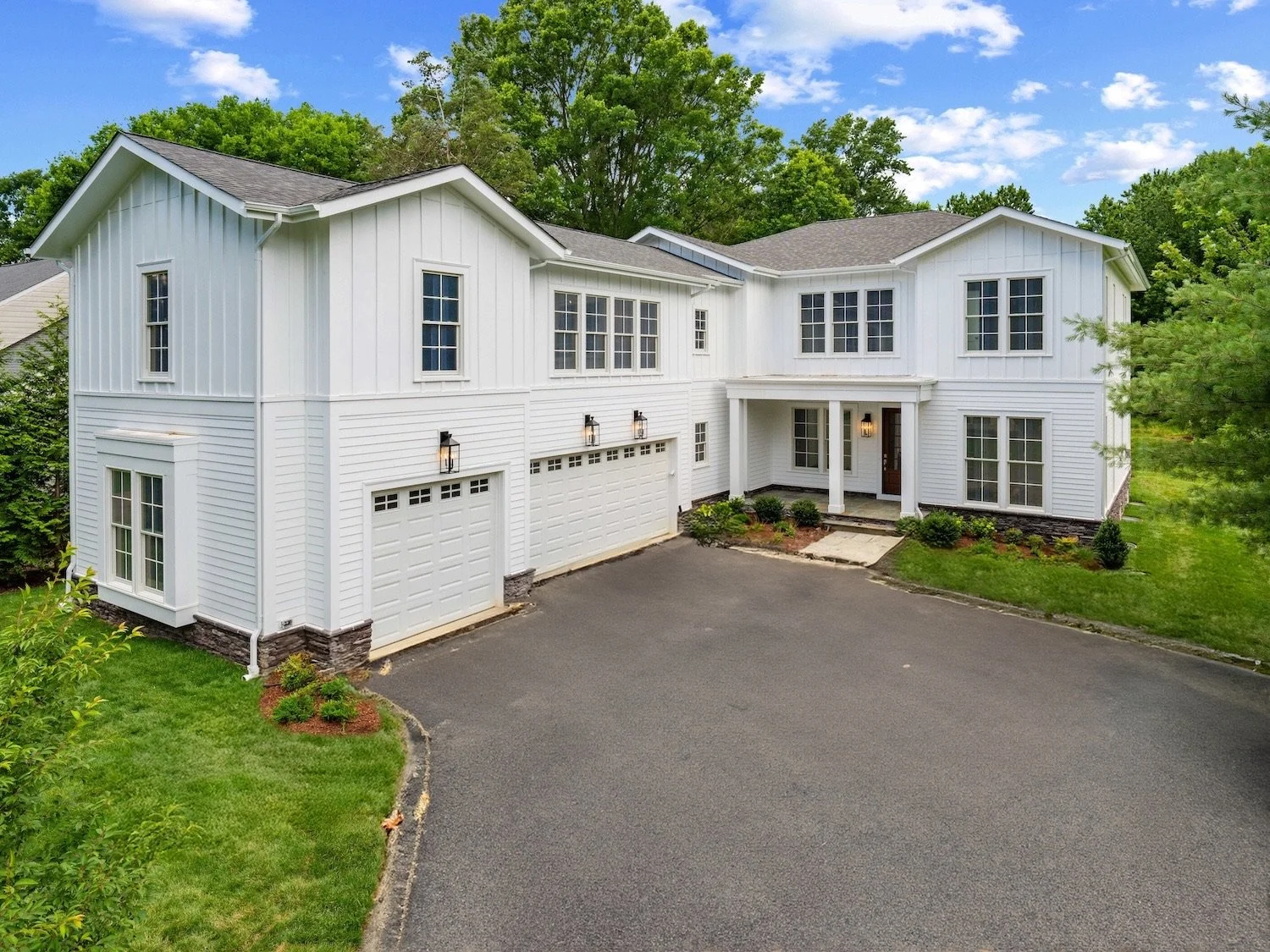 Two staircases with sleek metal balusters, three main-level pocket doors, and soaring 10-foot ceilings on the main floor (with 9-foot ceilings upstairs and in the lower level) enhance the home's spacious and open feel. Andersen 400 Series windows provide abundant natural light and energy efficiency, while a Carrier 3-zone HVAC system with Ecobee thermostats ensures year-round comfort. The home is elevator-ready, with stacked closets on each level and conduit pre-installed for future installation. A beautifully crafted Therma-Tru Fiber-Classic Oak Collection front door sets the tone upon entry.