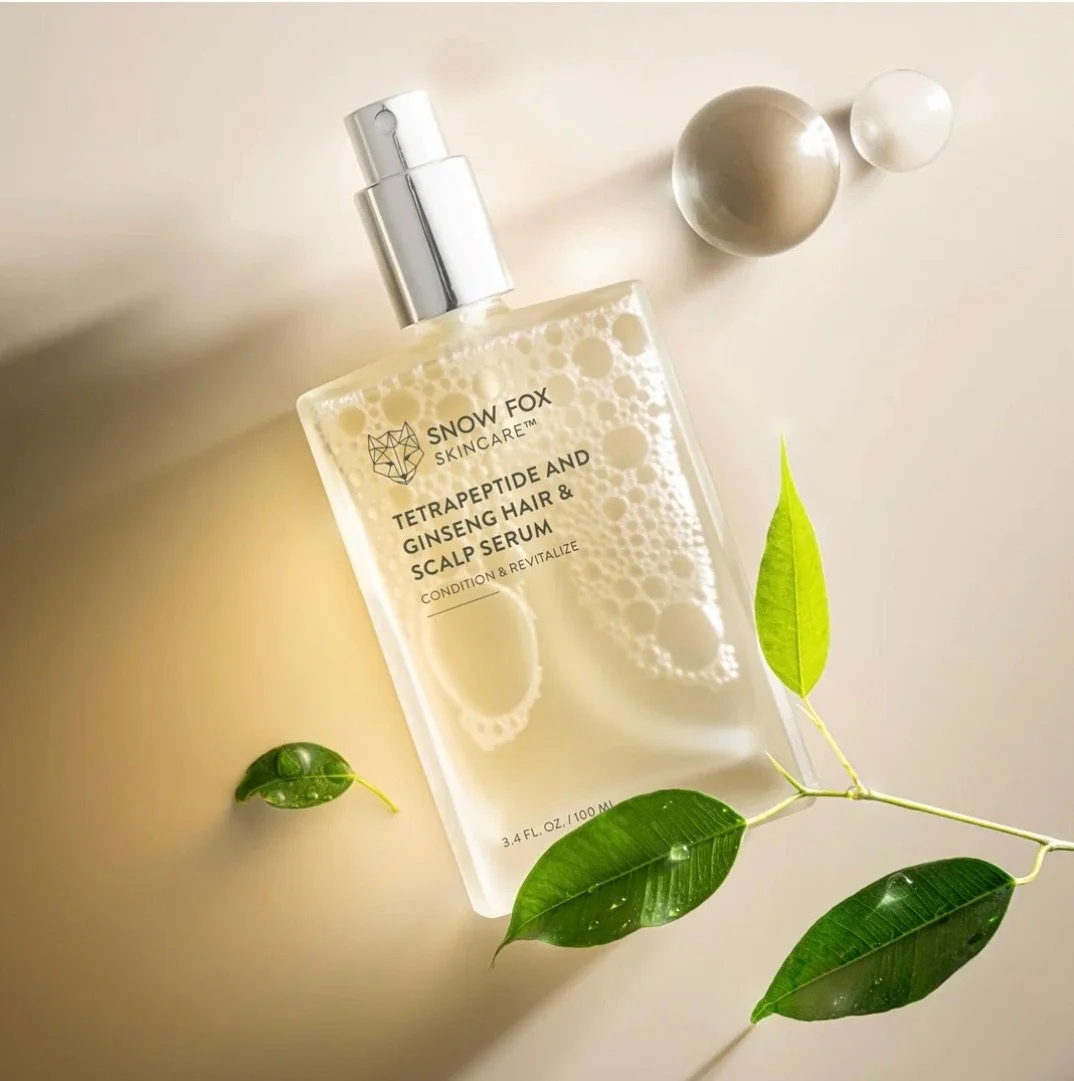 I began with the Snow Fox Tetrapeptide & Ginseng Hair & Scalp Serum. It’s lightweight, cooling, and honestly feels like a moment of calm every time I use it. Formulated with red ginseng, tetrapeptides, and fermented botanicals, it nourishes the scalp, soothes inflammation, and creates the kind of healthy foundation your hair wants to grow from.
