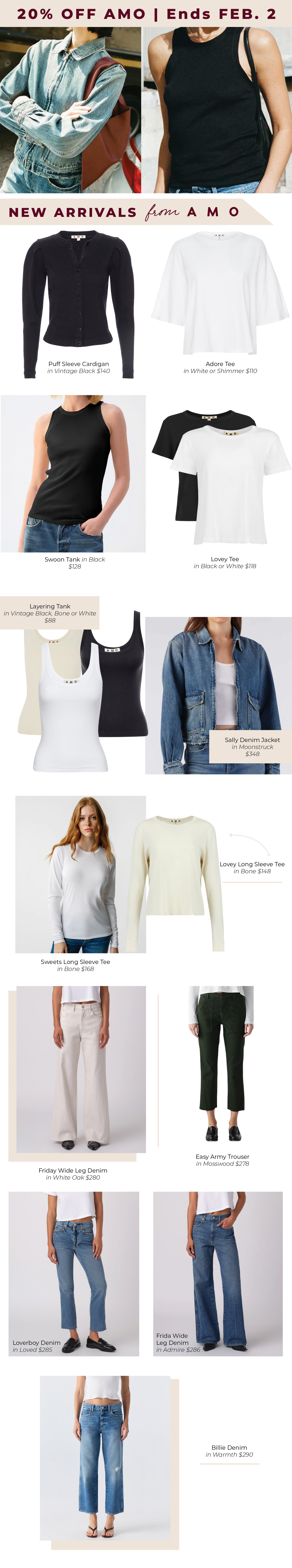 I follow tons of other stores and brands on Instagram. Besides menopause and dogs, that is pretty much the only topic that populates my algorithm. I love to see what other boutiques are doing on social media and, for our events, this research—if I can call it that—is where a lot of my ideas start to take shape. I was watching a story from another independently owned boutique, and the owner was talking about her most worn items from 2025. Two of the items were from AMO, a line we carried many years ago. I came upon AMO again last year when I went to the showroom that represented Sold Out NYC, one of our newer lines. They mentioned I should take a look at AMO again; it was “having a moment,” they said. I shrugged it off and said maybe next time.