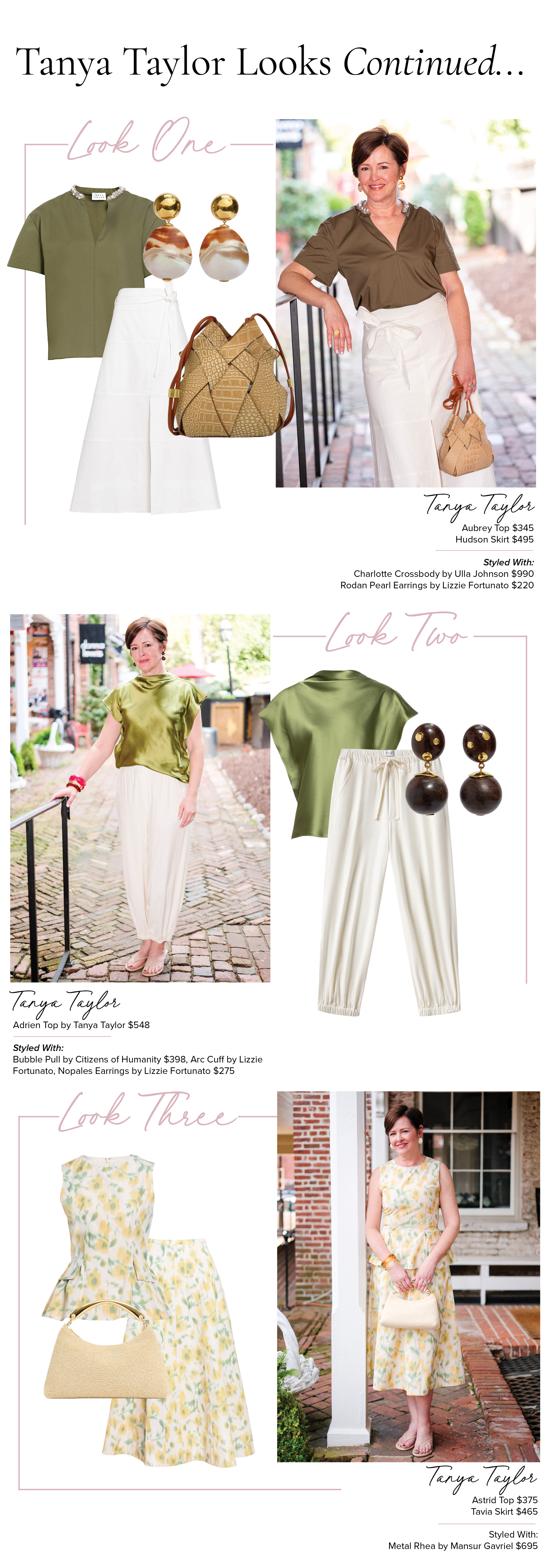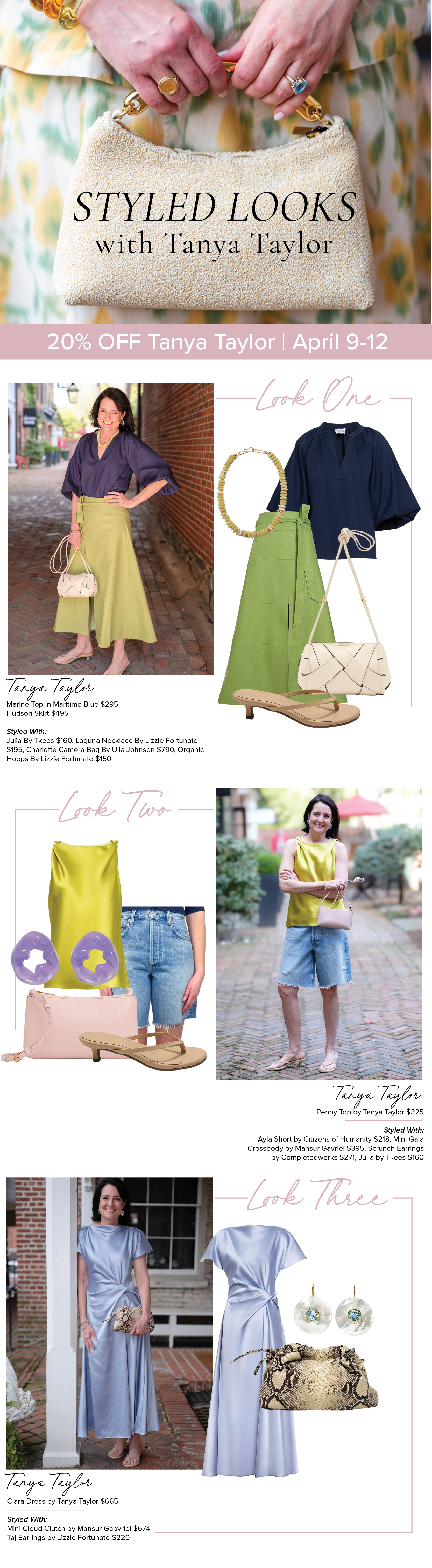 This week, we are hosting our second-ever Tanya Taylor event. We introduced the line to the store last fall, and the response has been amazing—our customers love Tanya Taylor. A mother of two, Tanya lives in NYC, where she raises her children. She has a love of color and knows how to cut a dress so it is flattering and easy to wear. I always say that I know a line works when it has key pieces that are repeated each season. That means the fit is right and it’s a proven style. The Hudson skirt is a key piece every season from Tanya Taylor. We had it this fall in suede and denim, and now we have a cotton poplin version in three colors.