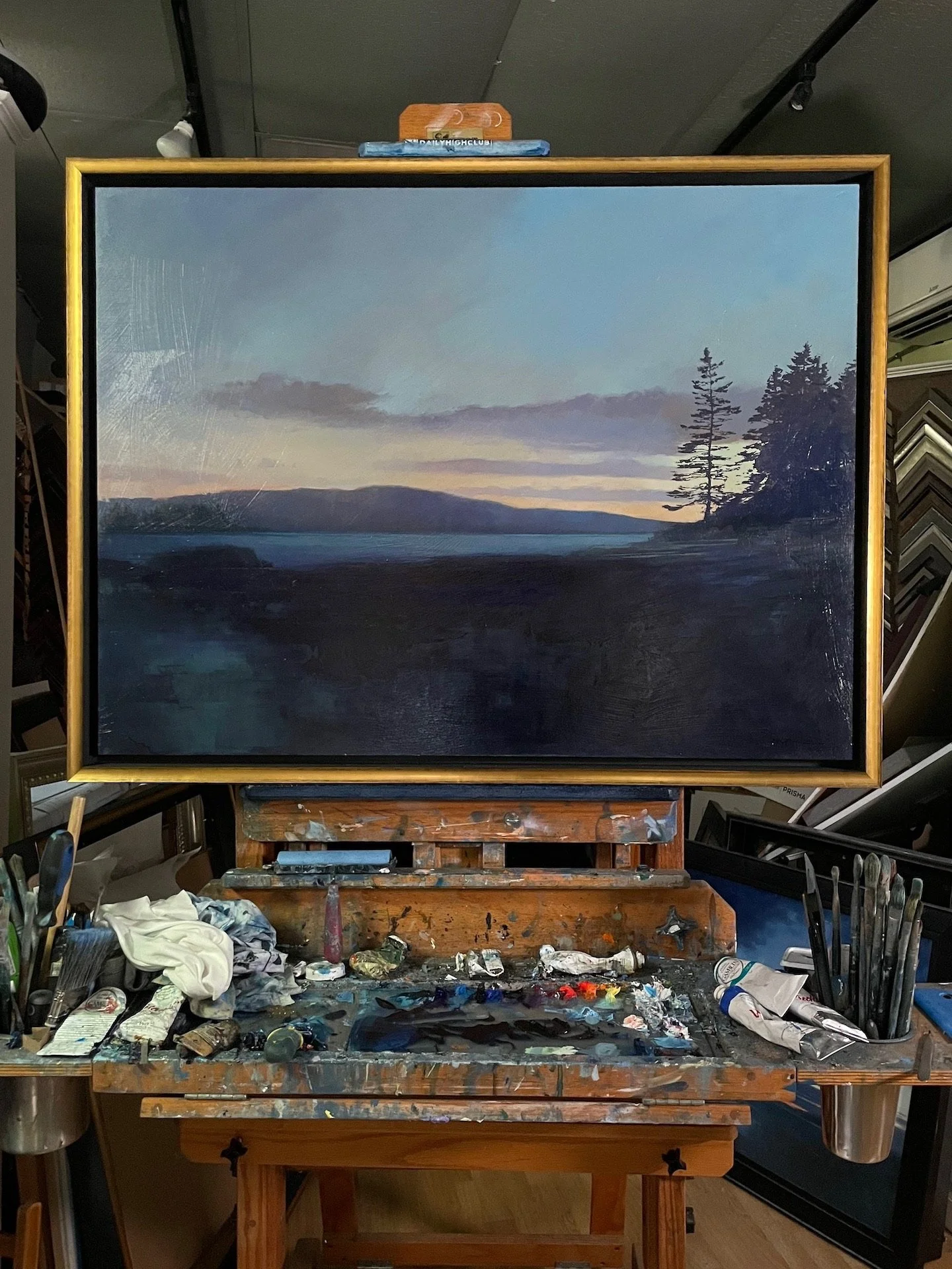 “Invitation” by Don Ripper framed in a simple gold float frame.
