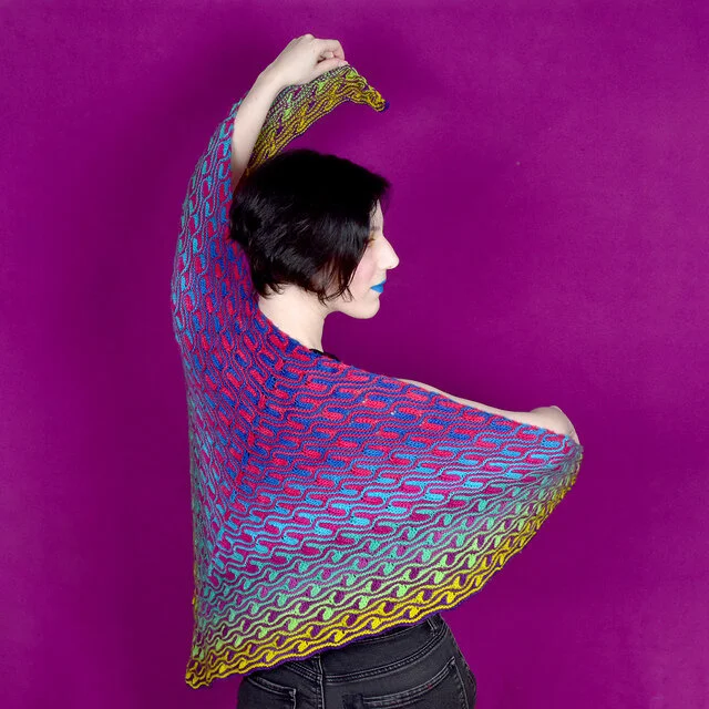 fibre space is so excited to host a very unique pop-up event on July 9 and 10. Tina Whitmore, the artist who created Freia Yarns, will be joining us with a huge collection of her amazing ombré yarn cakes. This yarn hit the market in 2010 and was, at the time, unlike any other hand-dyed yarn that existed. Now, it is one of the most copied trends in the yarn industry! Her extra-long gradient fade yarns gradually move from one color to the next, resulting in the most uniquely amazing finished pieces, one that cannot be mass-produced. This yarn makes truly one-of-a-kind pieces.
