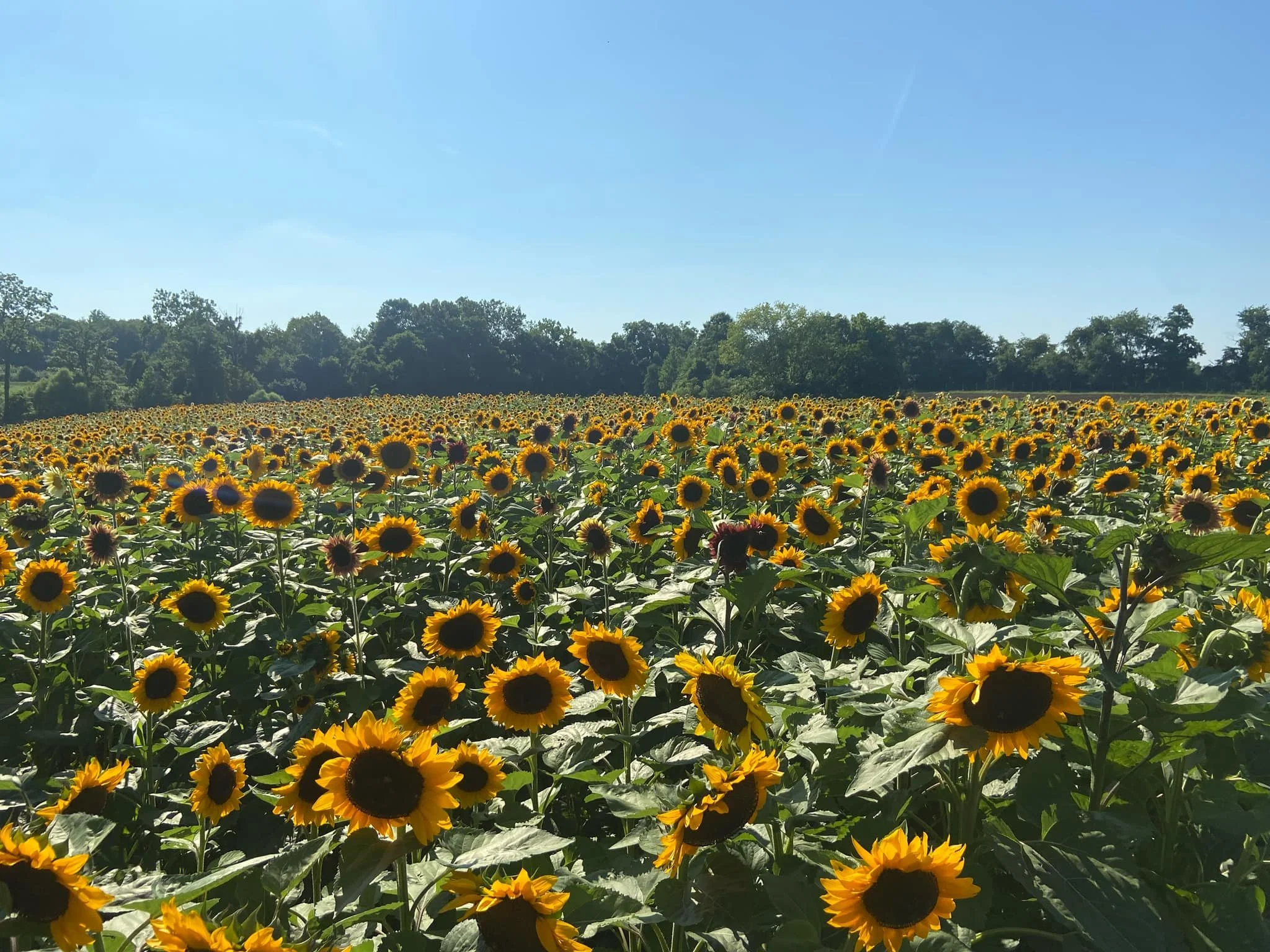 First up is Burnside Farms in Nokesville: a sunflower lover’s dream come true. Their annual Summer of Sunflowers event is a must-see, with over 30 acres of sunflowers in full bloom. You can stroll through the fields, pick your own sunflowers to bring some sunshine home, and take loads of gorgeous photos. They also grow other summer flowers, making it a colorful paradise.