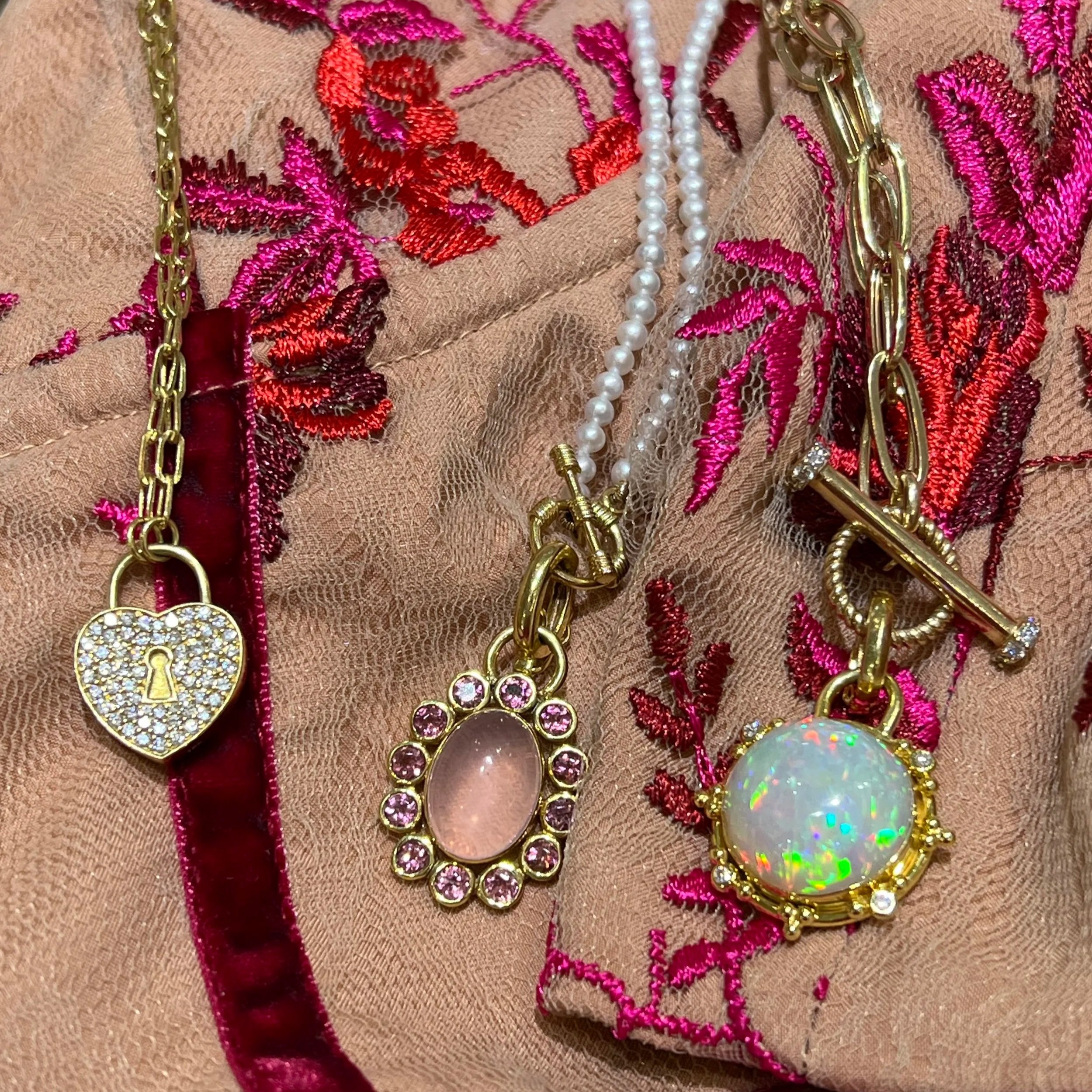 For those who love symbolism, the Apollo Bow and Arrow charm offers a poetic nod to Cupid’s aim, while a pink enamel rose gold vermeil cushion locket invites a more personal touch—perfect for holding a photo or sentiment close to the heart. Diamond heart necklaces in 18K white gold provide a classic expression of love, refined and enduring.