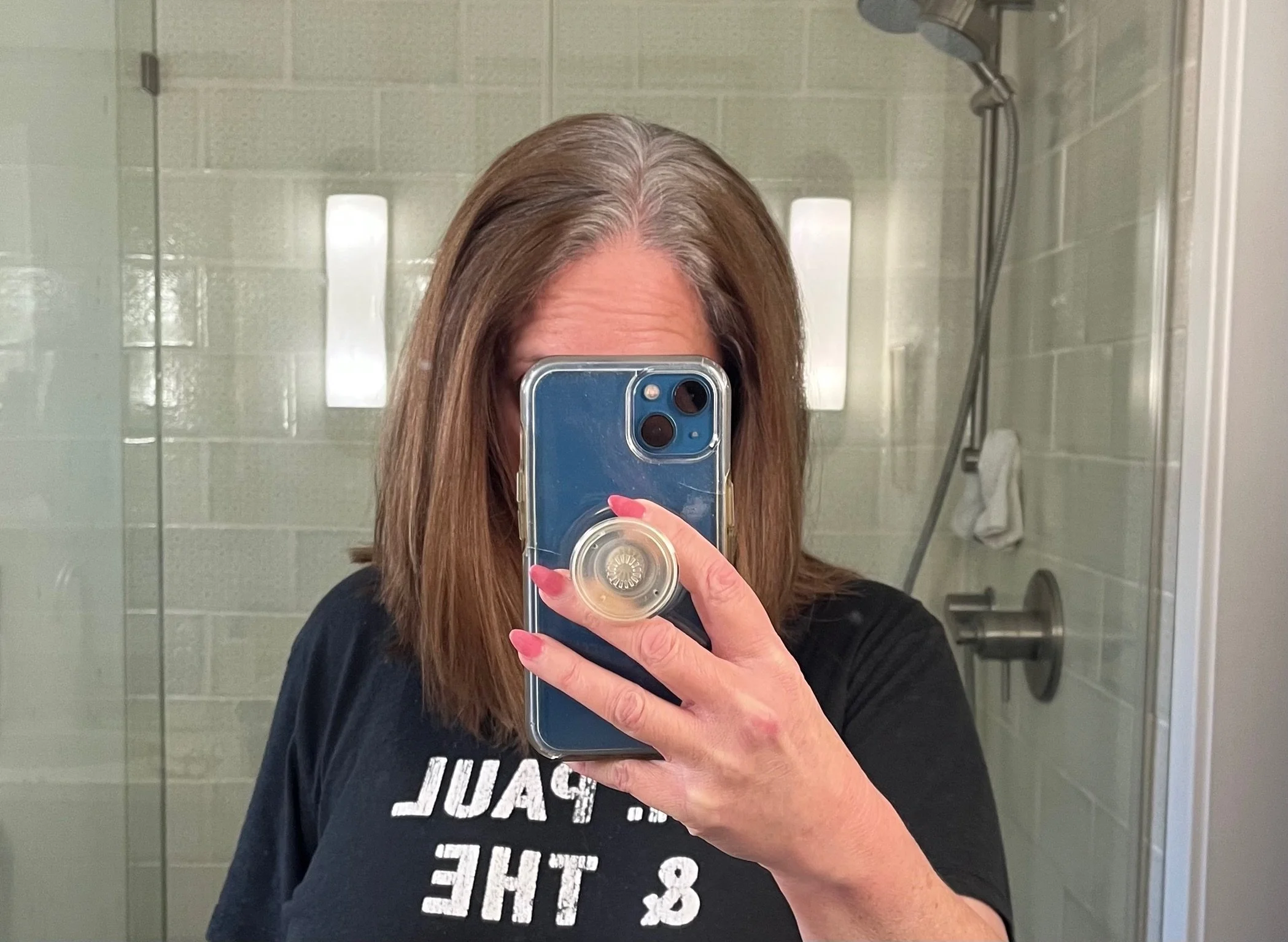 Amy: I’ve decided to grow out my gray hair. For the next—oh, let’s call it one to two years—I’ll be in transition, rocking what is currently a very chic three-inch racing stripe down the middle of my head.