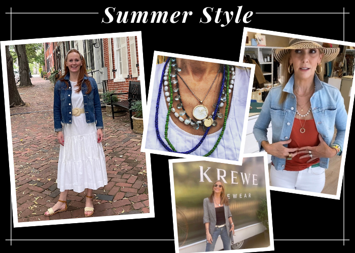 Alicia: Summer means chill with clothing, but I amp up my jewelry and get out my favorite hat. I'm a creature of habit when it comes to seasonal jewelry. Summer means a slew of necklaces that each have a memory and bring me to that summer mindset. Clothing, on the other hand, needs to be simple for me in the summer in order to flip the equation in the fall. Alicia's rule of style… Summer means layer the jewelry and simplify the clothing. Flip to fall where layering the clothing means keeping the jewelry less complicated.