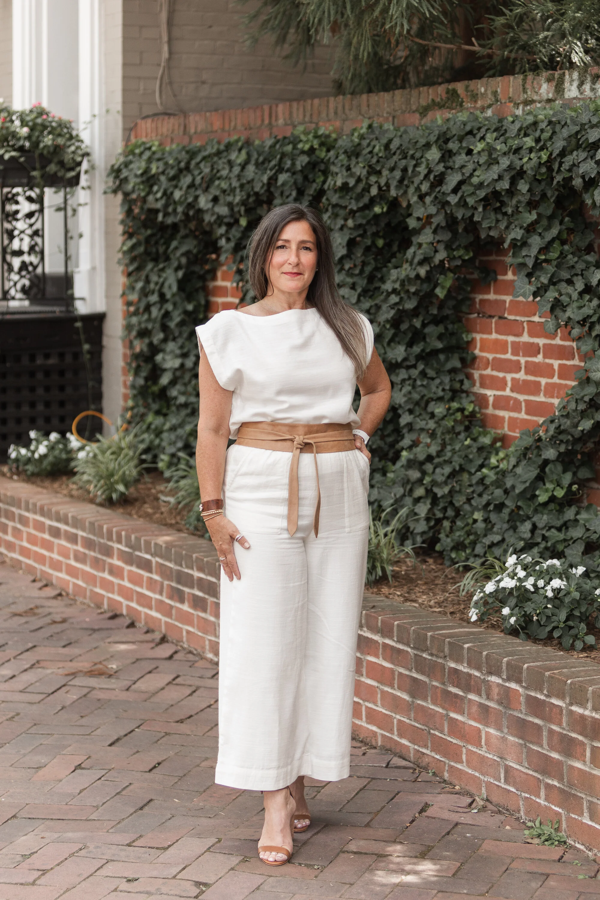 Nicole’s background is in event planning, so her attention to detail is meticulous. That goes a long way in the consignment business! When you walk into 529, you know a good conversation will be had when Nicole is there! She knows so many of our customers from her previous career at Belle Haven Courtney Club and has a great rapport with them all. When Katie and I opened Mint Collective, Nicole became a fast fan. Our comfortable and chic style won her over. I think she looks fabulous in this white linen ensemble from Laude the Label. Stop into 529 this summer and say hello to Nicole! You may even have the pleasure of meeting her bubbly daughter Sam, who will be working weekends this fall!