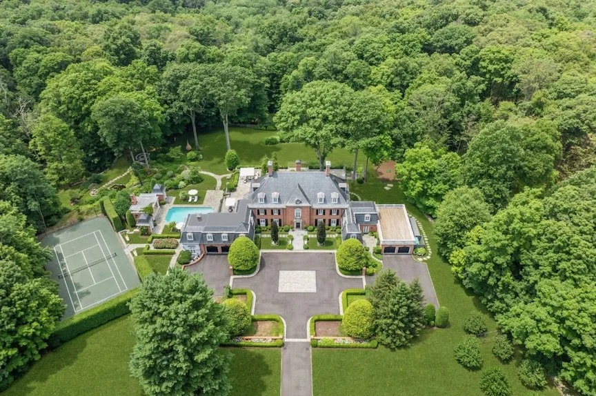 Situated on coveted Round Hill Club Road, this stately 11,870 sq ft home features seven bedrooms, nine full bathrooms, and sweeping grounds ideal for entertaining. The tennis court—tucked among mature trees—provides a quiet, picturesque setting for a match or leisurely afternoon rally. A short distance from the famed Round Hill Club, this property is a true gem for tennis lovers and estate enthusiasts alike.