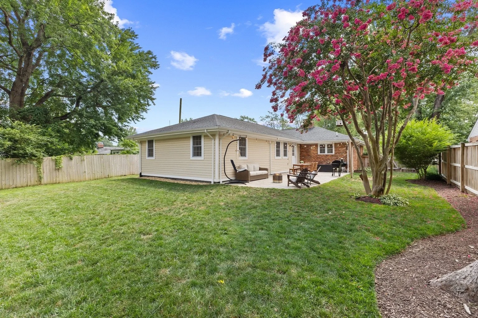Step outside from the family room to a flagstone patio added in 2022, perfect for outdoor dining, grilling, or cozying up around a fire pit. The backyard is flat, private, and fully fenced—ideal for pets, play, and relaxation.