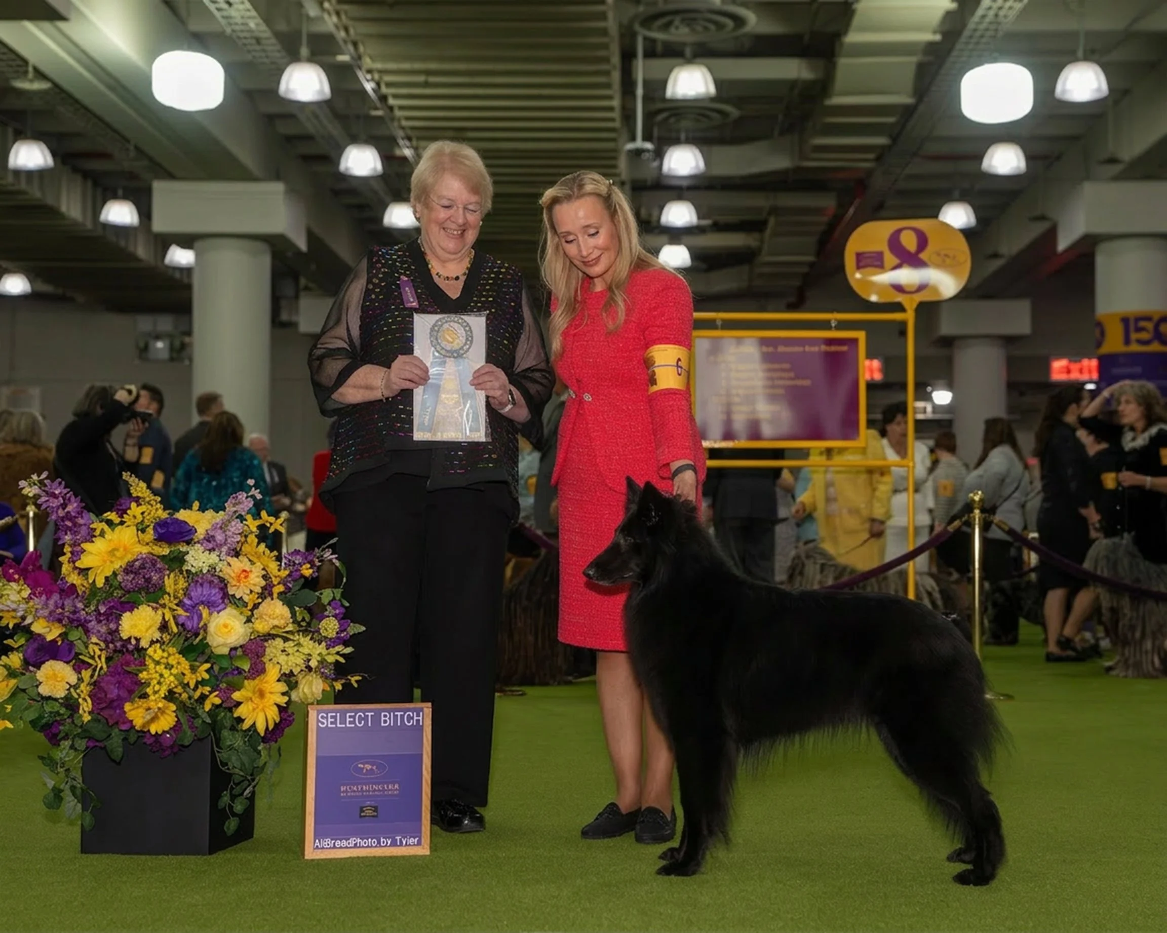 In February 2026, Phoebe competed at Westminster, the Super Bowl of dogs shows, and earned Select, essentially runner-up to Best of Breed.