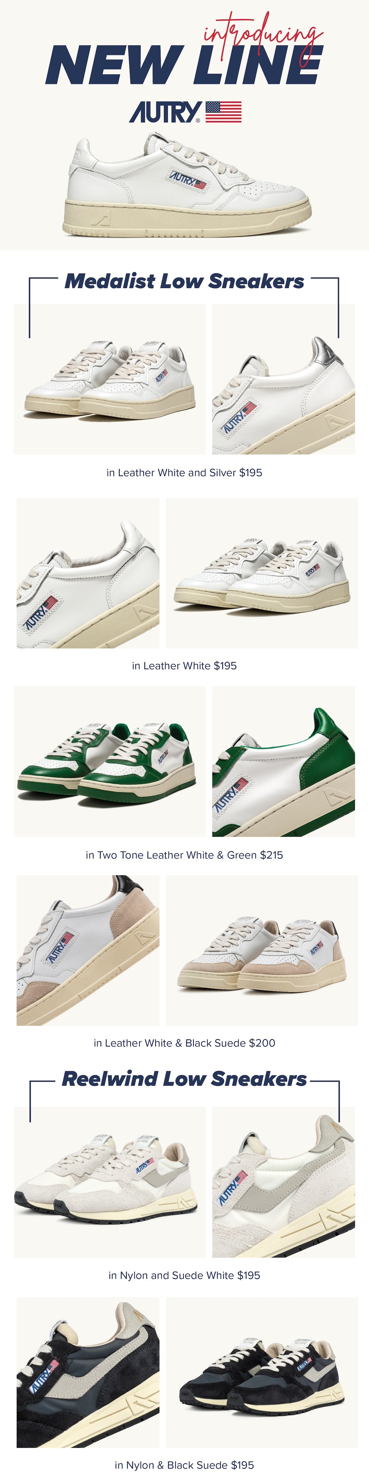 A little bit about them: Autry was founded in 1982. They were mainly a tennis shoe brand and the company boomed with the casual tennis shoe trainer trend of the 80s. The founder, Jim Autry, suddenly passed away in the 90s and the brand ceased production. About 20 years later the brand was picked back up by three business partners, one who happened to be the former CEO of a little company called Gucci. Needless to say they are back, with their same classic 80s design and comfort. I am so excited; we just unpacked our first shipment and I hope you love them as much as I do!