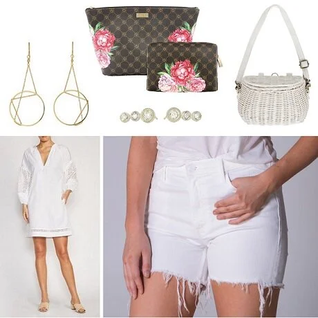 When it's super hot and humid, we gravitate towards light, white outfits. This tunic and these cut-offs, for example, then add statement accessories for extra style points, like either of these amazing earrings. Headed out? We have super cute cosmetics bags for out-of-town travel, and the sweetest basket for jaunts around town, all in this week's top picks.