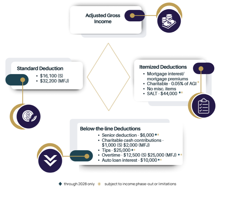 Several new “below the line” deductions are now available as well – they have restrictions, thresholds, and particulars, so work with your financial professional and tax advisor to learn more: